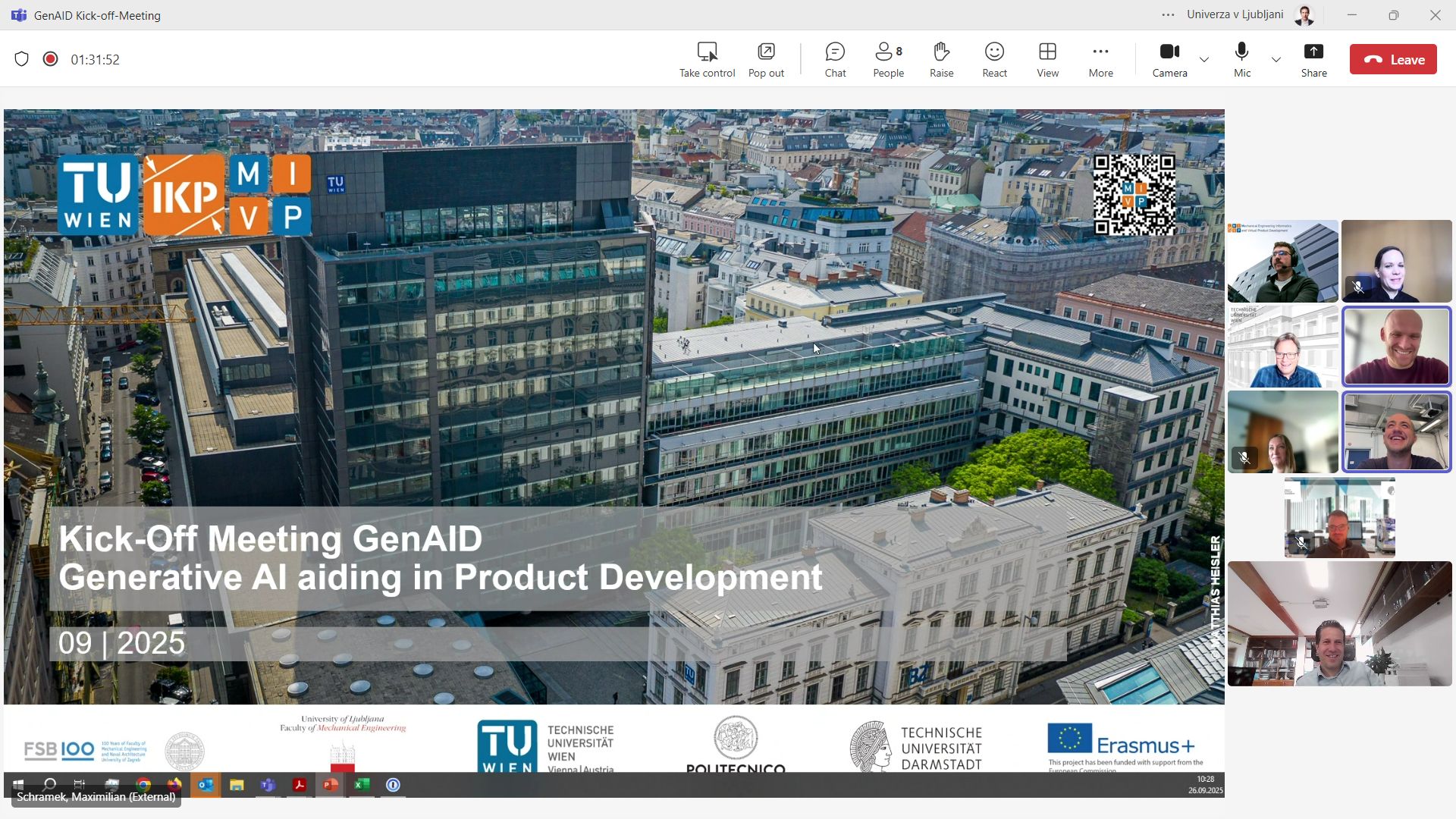 GenAID Kick-Off 🚀 Kick-off of the GenAID Project – Generative AI aiding in Product Development We are excited to announce the official start of GEN AID, a three-year Erasmus+ project uniting partners from University of Ljubljana, Faculty Of Mechanical Engineering, Politecnico di Milano, Technische Universität Wien, Technische Universität Darmstadt and University of Zagreb / Sveučilište u Zagrebu (FSB ZAGREB). The project explores how Generative AI can support product development and reshape higher education. 🎯 Objectives GEN AID will equip engineering students with skills to use Generative AI effectively – from prompt creation to critical evaluation – while promoting its ethical adoption. Educators will gain tools and open resources [...]
